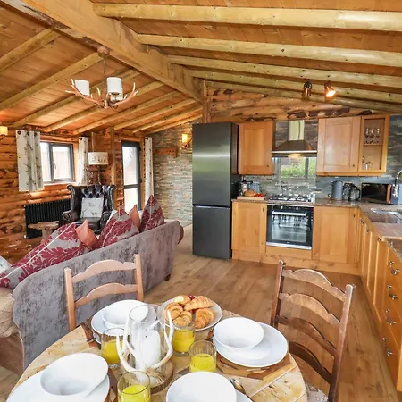 Stag Lodge Holiday Retreat is equipped with an electric kettle, a fridge, and an oven for self-catering in a dining area.